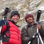 Searching for the cat in the winter is hard, but the spotters are geniuses. We saw one! Very professional setup in such a remote, cold place. Trekking in India is the best for Ladakh.