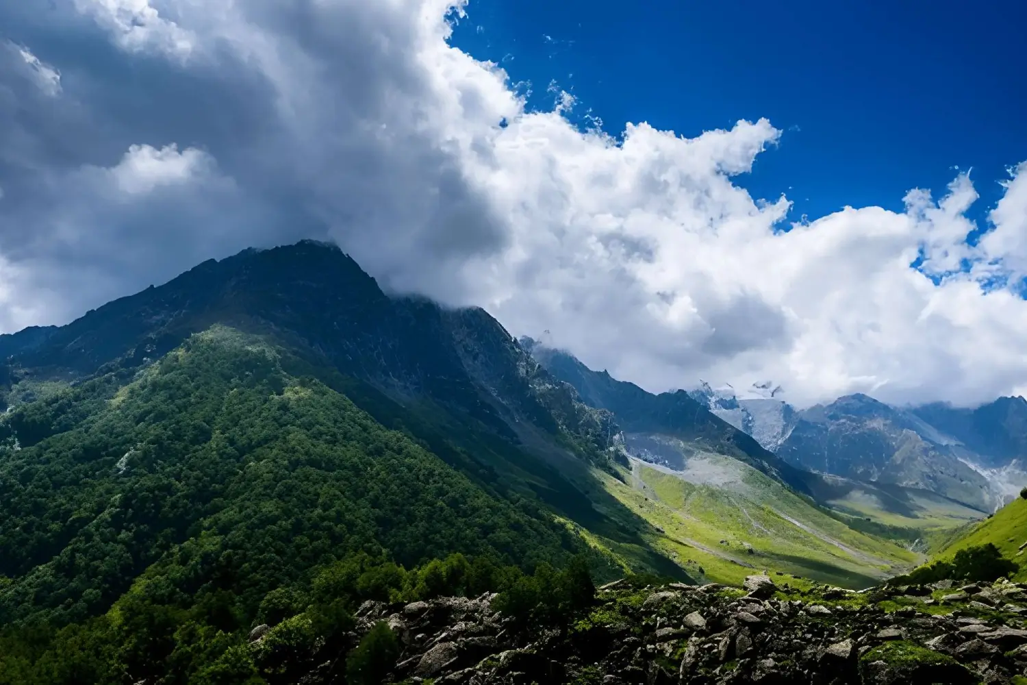 Unlike summit-focused routes, this trek in Himachal Pradesh emphasizes proximity rather than conquest. The mountain stays just beyond reach, its face changing color through the day. Views of Indrasan and surrounding peaks deepen the sense of being enclosed within a high alpine bowl. For trekkers interested in long camps and sustained mountain views, this route offers depth without extreme exposure.