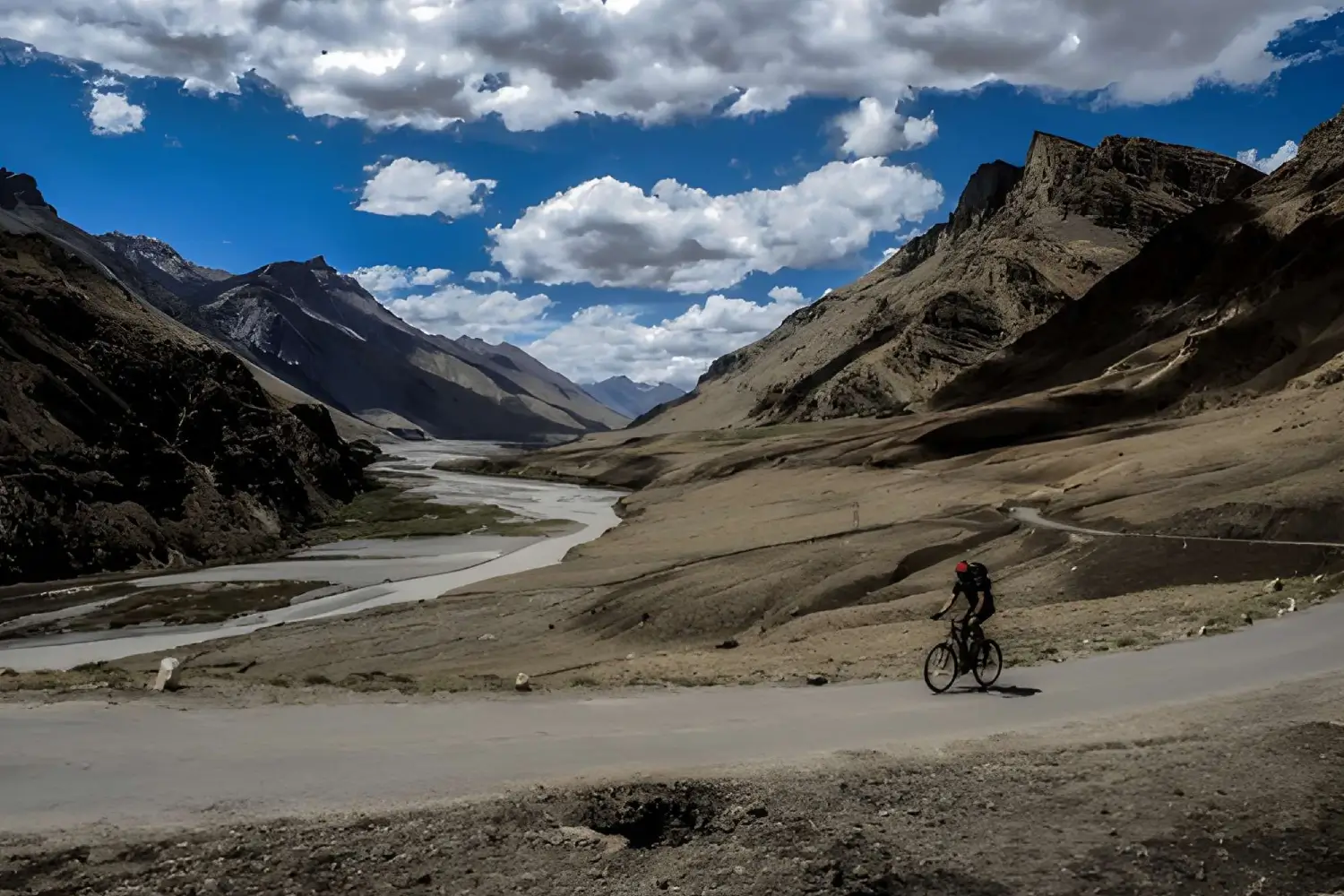 A Kumaon mountain biking tour also takes you to Almora, where heritage homes, bustling bazaars, and panoramic ridges set the tone. From here, ride towards Kausani, which offers sweeping views of Trishul, Nanda Devi, and Panchachuli. The roads curve gently through terraced fields and pine forests, making it a favorite stretch for riders. Further ahead, the trails of Baijnath and Bageshwar open up to valleys dotted with ancient temples and the confluence of rivers, offering a mix of cultural depth and raw Himalayan beauty.